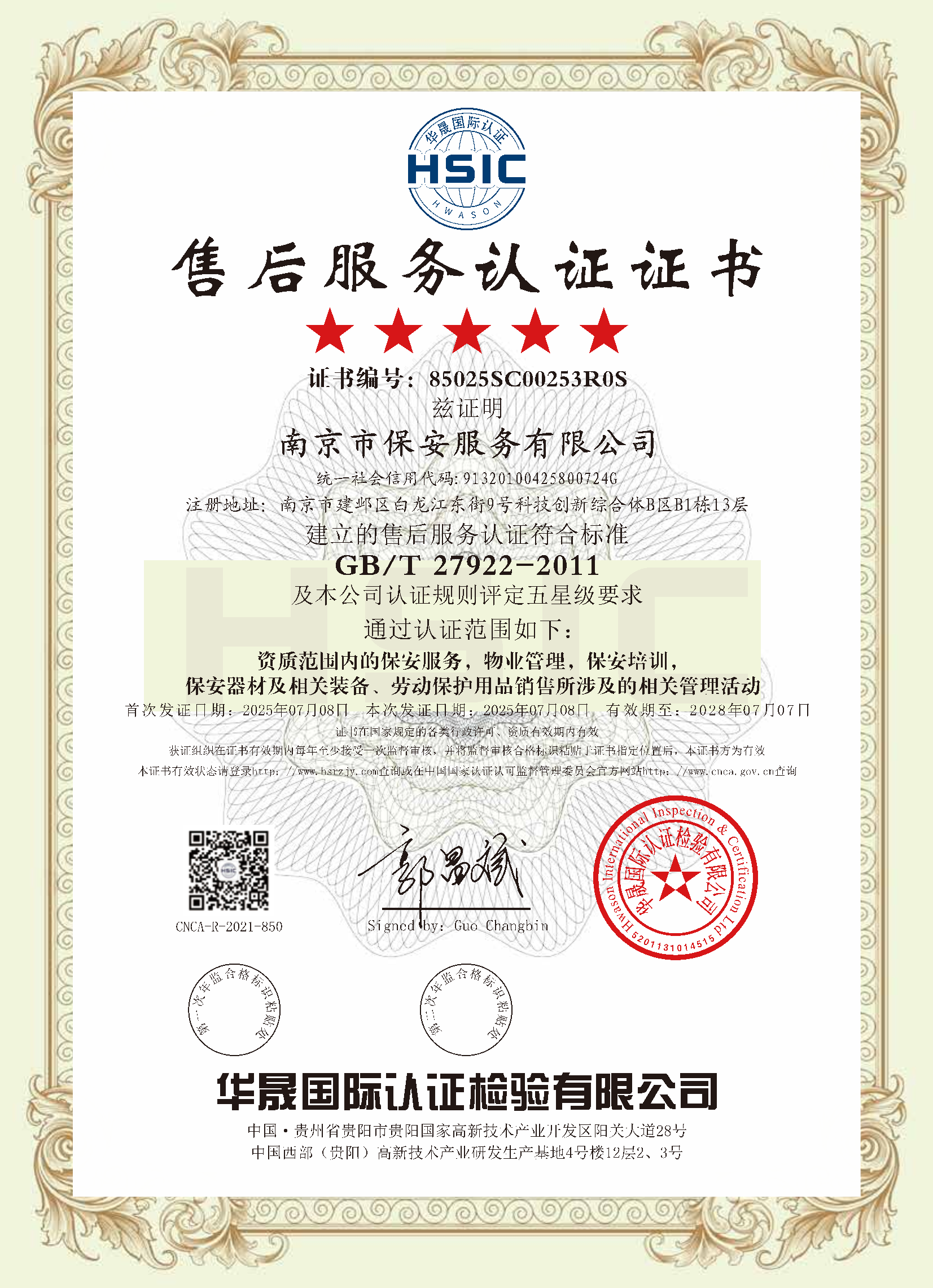 祝賀:南京市保安服務(wù)總公司通過企業(yè)誠信管理體系認(rèn)證和企業(yè)社會責(zé)任管理體系認(rèn)證[07-16]